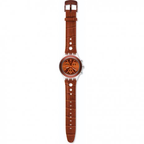 Cronografo alluminio plastica dura Questo orologio Swatch ha una cassa in plastica con un diametro di 43 mm ed è dotato di un cinturino in Pelle. All'interno ha un movimento quarzo svizzero per orologi di qualità ed è finito con un vetro di tipo plexiglass. L'orologio è impermeabile a 3ATM. Ciò significa che l'orologio è impermeabile ai spruzzi. L'orologio è fornito con 2 anni di garanzia in tutto il mondo.