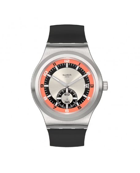 orologio Swatch con cassa in Inox diametro di 42 mm , dotato di cinturino in gomma, movimento ETA automatico, impermeabile 3ATM.
