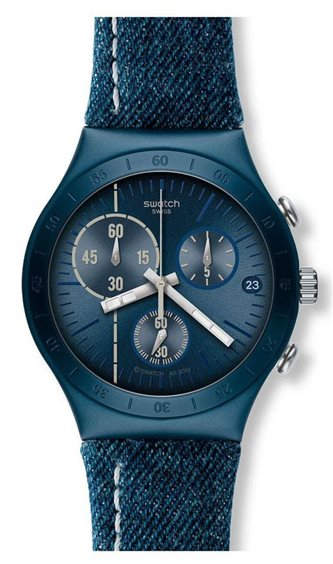 Marchio SWATCH dal 1983 leader mondiale della categoria.Orologio della linea Irony Chrono. Cassa in alluminio blu, quadrante blu, cinturino in pelle e tessuto jeans blu.Funzioni di cronografo e datario al 3. Resistente all'acqua, agli urti, precisione al quarzo. Materiali ipoallergenici. SWISS MADE. Scatola originale e due anni di garanzia ufficiale Swatch.