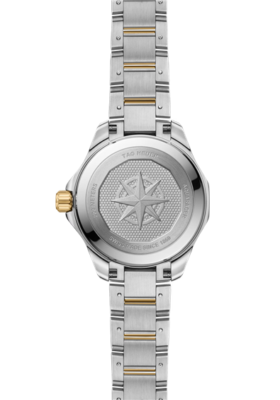 Il TAG Heuer Aquaracer Professional 200 Solargraph unisce eleganza e resistenza in uno straordinario design bicolore in acciaio lucido e acciaio placcato oro giallo (2N 18 carati). Animato dalla tecnologia Solargraph, una carica completa offre fino a 10 mesi di autonomia, anche in condizioni di completa oscurità: questo raffinato orologio è pronto per qualsiasi viaggio, dagli ambienti urbani alle profondità della natura selvaggia. Il quadrante blu spazzolato con effetto "soleil" crea uno splendido contrasto con la brillantezza degli elementi placcati oro giallo. Incorniciato da una lunetta placcata oro e ornato da 11 scintillanti indici in diamanti.La cassa da 34 mm in acciaio satinato e oro giallo 18 carati 2N è progettata per resistere alle intemperie, con lunetta unidirezionale e impermeabile fino a 200 metri.