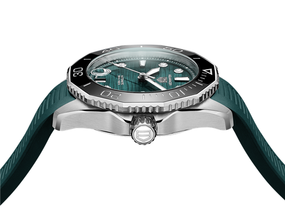 Immergiti nelle rinfrescanti acque delle lagune e barriere coralline che hanno ispirato questo TAG Heuer Aquaracer. Il dinamico quadrante tempestato di diamanti VS da 1,40 mm (0,078 ct) si fa notare, mentre la professionale e resistente cassa conferisce solidità e aiuta a superare ogni limite personale.