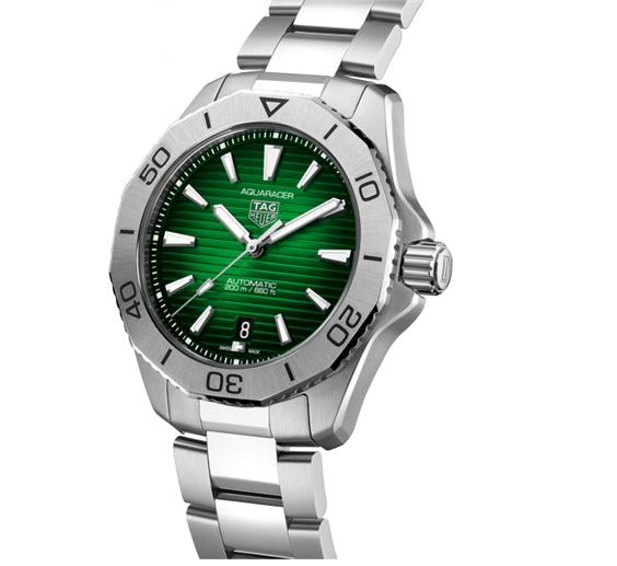 Con il suo quadrante verde intenso effetto "soleil" spazzolato in robusto acciaio, questo audace TAG Heuer Aquaracer è adatto a scoprire territori inesplorati. Uno strumento versatile ideale per spingerti oltre i limiti.