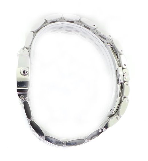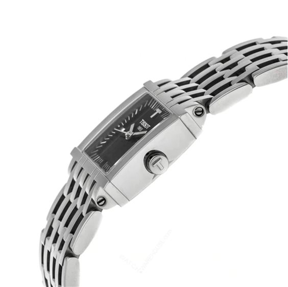 L' orologio T-Trend Six-T di Tissot è per la donna che trasuda potere e stile, e che vuole mostrare al mondo che ha un gusto impeccabile. Non c' è niente di semplice in questo segnatempo. Il cinturino in acciaio inossidabile non passerà inosservato al polso. La lunetta quadrata in acciaio inossidabile è contrastata da un quadrante di madreperla, caratterizzato da indici diagonali neri accattivanti. Il quadrante presenta inoltre una lettera T argentata a ore 12, trattini argentati a ore tre e nove, finestrella del calendario a ore sei e lancette argentate. Questo orologio ha un vetro zaffiro antigraffio ed è impermeabile fino a 99 piedi.