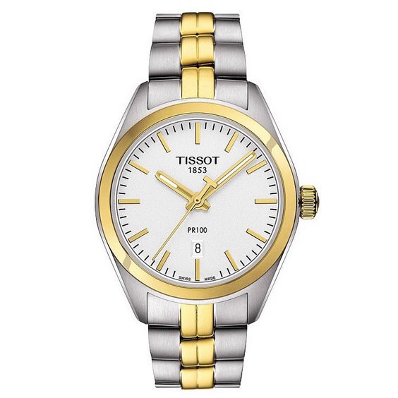 Orologio sportivo e elegante da donna con cassa e bracciale in acciaio inox e finiture placcate oro giallo, vetro zaffiro antigraffio, quadrante argento, secondi al centro e data a ore 6.Bel bracciale robusto con chiusura a cassetta regolabile. Viene consegnato completo della sua scatola originale Tissot perfetta, manuale di istruzioni in tutte le lingue e garanzia internazionale Tissot di 24 mesi.