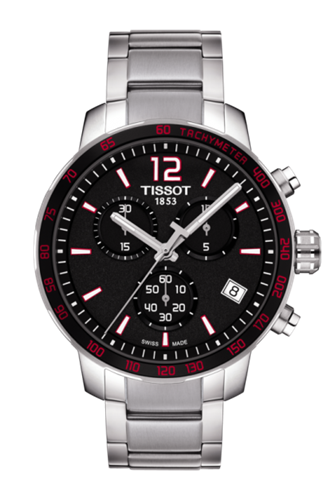 OROLOGIO CRONOGRAFO AL QUARZO CON CASSA DI FORMA ROTONDA QUADRANTE NERO CON INDICI E LANCETTE FLUORESCENTI, DATARIO A ORE 4 CINTURINO IN ACCIAIO CON CHIUSURA DEPLOAYANT CON SICURA.