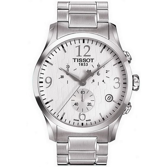 Orologio Cronografo con data, cassa e cinturino in acciaio con chiusura a farfalla e pulsanti, movimento svizzero al quarzo, vetro zaffiro, impermeabile 3 ATM, quadrante silver, misure diametro 42mm. Completamente Swiss Made