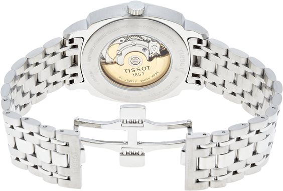 Bell'orologio Tissot Lord in acciaio lucido e spazzolato, con cassa sagomata di 40 mm., quadrante bianco con indici, XII e VI in acciaio, secondi al centro, datario, vetro zaffiro, movimento automatico swiss made visibile dal fondello in vetro zaffiro, impermeabile a 50 mt. Bracciale in metallo con chiusura a scomparsa a tre lame. Garanzia due anni.