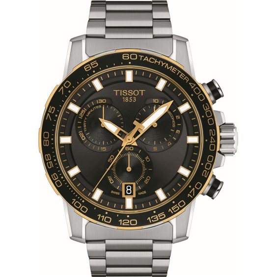 Il Tissot Supersport Chrono ha linee rette e spigoli vivi con un design audace che conferisce una forte personalità alla cassa da 45,5 mm. Il quadrante con i suoi grandi indici con SuperLuminova® e le anse asimmetriche danno un potente effetto 3D, un aspetto dinamico e consente estrema leggibilità anche in condizioni di oscurità. Per conferire un aspetto sportivo e di tendenza a questo cronografo svizzero, l'orologio ha un cinturino in pelle cucito a mano con effetto vintage.