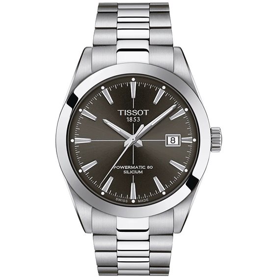 Orologio Automatico Tissot Gentleman Powermatic 80 Silicium Da Uomo Di Tissot Della Collezione T-Classic. Modello: Powermatic 80.811. Orologio Automatico Con Cassa In Acciaio 316 L, Di Forma Rotonda, Con Fondello Trasparente. Vetro Zaffiro Bombato Antigraffio Con Trattamento Antiriflesso. Il Quadrante È Di Colore Antracite Con Indici A Bastoni. Il Cinturino È In Acciaio Inossidabile Di Colore Grigio Con Chiusura A Farfalla Con Pulsanti. Il Movimento È Svizzero Automatico. Orologio Con Riserva Di Carica Fino A 80 Ore. Lunghezza: 40.00, Larghezza: 40.00, Spessore: 11.50, Distanza Delle Anse: 21.00 E Peso: 164 G. La Resistenza All'Acqua È: Impermeabile Fino A 10 Bar (100 Metri/330 Piedi).