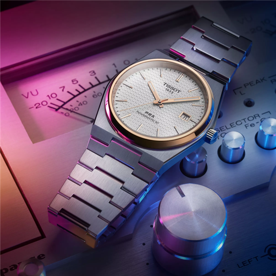 Tissot ripropone un design iconico della fine degli anni '70, con cassa e bracciale integrati. La cassa del Tissot PRX Powermatic 80 misura 40 mm di diametro. Ha una linea leggermente a botte e ospita una lunetta liscia, sottile e rotonda. Il movimento del Prx automatico è un Tissot Powermatic 80 che offre 80 ore riserva di carica.
