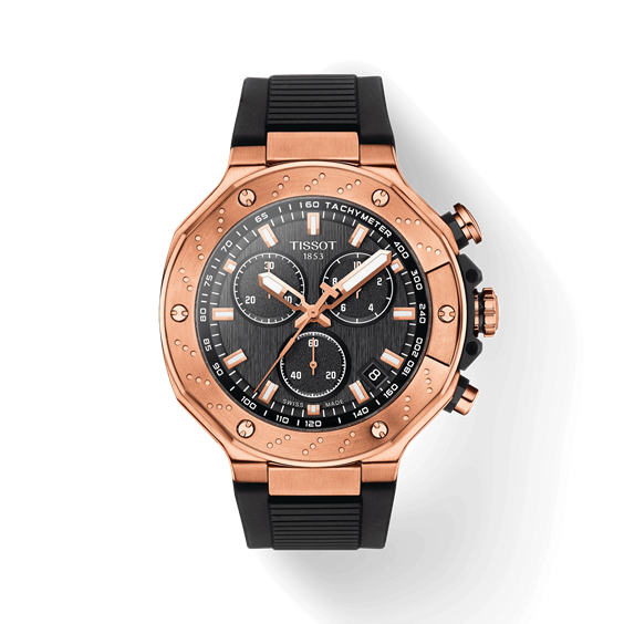 Il tissot t-race chrono torna con un nuovo design che ora presenta un quadrante più elegante, che conferisce all'orologio un aspetto più puro, ma pur rispettando le sue radici sportive. Come la moto, Tissot è il luogo in cui la passione incontra l'innovazione e lo stile. La collezione T-Race è ispirato da quello stile di vita e - libertà, strada aperta e passione: è l'orologio preferito dagli sportivi. La famiglia T-Race mantiene l'orecchio immerso nell'ambiente meccanico ed evoca costantemente il suo spirito. Ad esempio, c'è un disco del freno e calibro sulla lunetta, i pulsanti sono ispirati ai manubri e le alette di raffreddamento del motore sono raffigurate sul lato della cassa.È resistente all'acqua, con un movimento cronografo al quarzo e lancette distinte delle ore e dei minuti rivestite con SuperlumiNova.Tissot ha preso ispirazione dalla loro collaborazione per produrre orologi che riflettono la natura dinamica delle biciclette stesse e l'emozione dello sport.