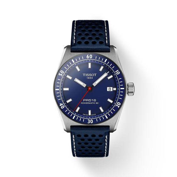 Questo orologio presenta una cassa in acciaio inossidabile da 38 mm e un quadrante blu dinamico, che incarna lo spirito di velocità e precisione. Il quadrante viene inoltre protetto da un vetro zaffiro con trattamento antiriflesso. Gli indici rivestiti in Super-LumiNova garantiscono visibilità in tutte le condizioni. Dotato di un movimento Powermatic 80, offre una precisione senza pari per uno stile di vita attivo. Il movimento può essere osservato anche grazie al fondello trasparente dell'orologio. Il modello è dotato di un cinturino in pelle blu, ma il suo design versatile è completato da un sistema di bracciale intercambiabile rapido perfetto per passare da riunioni di lavoro a uscite informali. L'orologio è resistente all'acqua fino ad una profondità di 100 metri. Il PR516 Powermatic è un classico moderno, che si fonde con la ricca tradizione di Tissot.