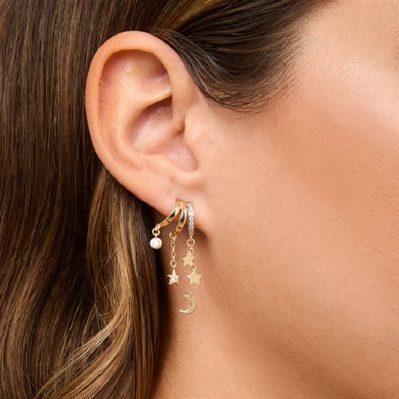 Marca : Valentina Ferragni Studio Collezione : Sogni Genere : Donna Tipologia Gioiello : Mono Orecchino Tipologia Orecchino : Orecchino Singolo Cerchietto Pendente Materiale : Argento 925 Galvanica : Oro Giallo 24kt Colore : Gold Pietra : Zirconi Colore Pietra : Bianco Chiusura : A Farfallina Simbolo : Luna Stella